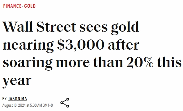 Fortune报道指出,今年以来,黄金的表现优于美国股市大盘,随着美联储越来越接近降息,华尔街对黄金的看涨情绪也愈发浓厚。