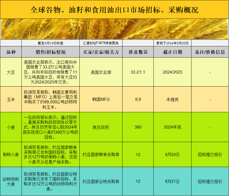 全球谷物、油籽和食用油出口市场招标、采购概况: