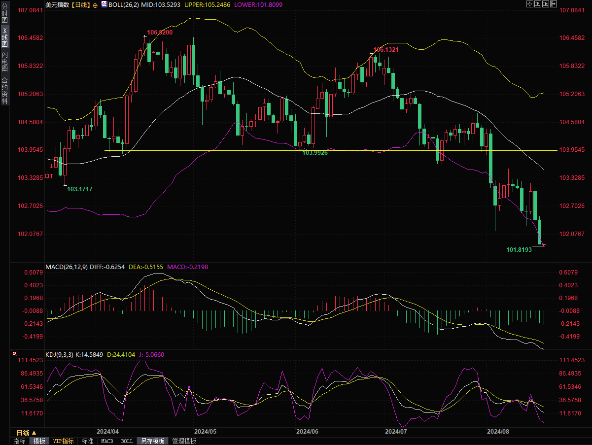 美元指数跌落102.00下方,截至收盘,下跌0.547%,最低跌至101.85,为1月2日以来新低,收报101.86。