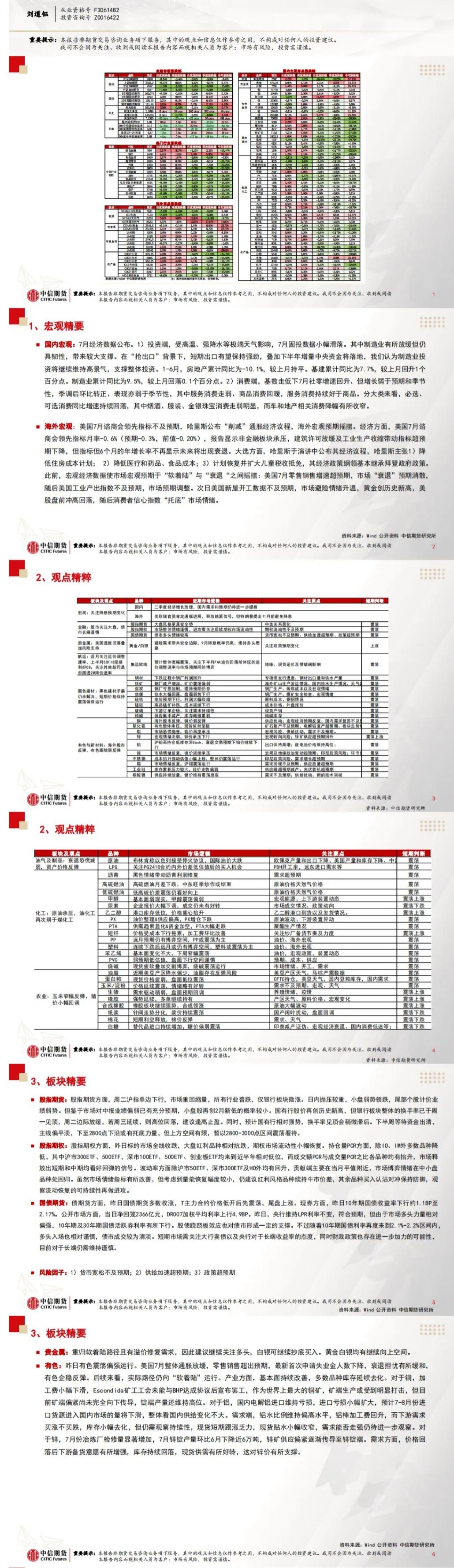 中信期货8月21日晨报:美国谘商会领先指标不及预期,黄金创历史新高