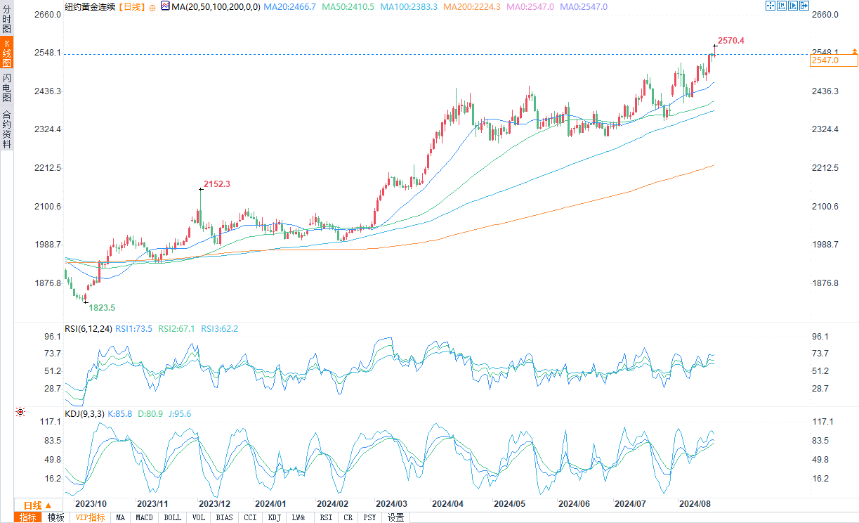 现货黄金报2508.81美元/盎司,涨幅0.19%。COMEX黄金报2547.0美元/盎司,涨幅0.22%。