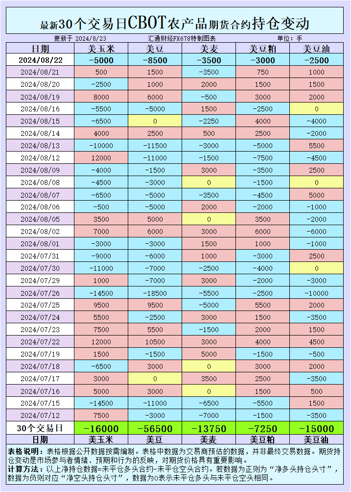 综合分析CBOT持仓数据、现货市场动态和作物进度,我们可以看到各品种市场在供应充足的情况下价格走势的变化。国际市场的招标和基差动态对各类谷物的价格形成了重要的支撑和压力。交易者应根据最新的市场数据和持仓信息,调整投资策略,密切关注市场的进一步变化。